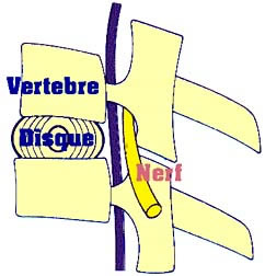 Les disques intervertébraux, sorte de «coussinets» qui servent à amortir les chocs entre les vertèbres, sont composés d'un noyau gélatineux et d'une enveloppe fibreuse. Si la pression des vertèbres sur les disques est trop forte ou si l'un des disques est altéré, le noyau comprimé déchire l'enveloppe fibreuse et il est propulsé vers l'extérieur du disque, provoquant la hernie discale. En sortant de son enveloppe, le noyau peut comprimer les racines des nerfs qui se trouvent à proximité. Généralement, la hernie discale survient dans les régions cervicale (à la hauteur du cou) ou lombaire (bas du dos). Lorsque la déchirure du disque se produit dans le bas du dos on parle alors de «lumbago» ou de «lumbago aigu» qui correspond à ce blocage violent, accompagné d'une douleur aiguë qui vous transforme en statue lors d'un faux mouvement.